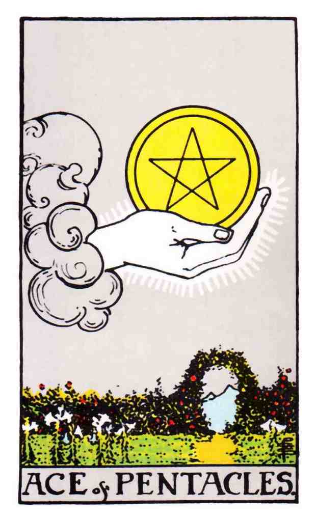 Although Pentacles are most commonly connected to the material world, this ace represents overall prosperity and new opportunities in every area of life.