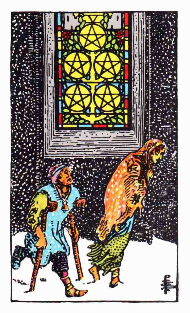It is a bit difficult to shine a positive light on the Five of Pentacles Minor Arcana card. It’s one of those cards that not many people desire in reading. It represents sickness, poverty, and general struggle, and the only acceptable place for this pentacle is reversed or in the past position.